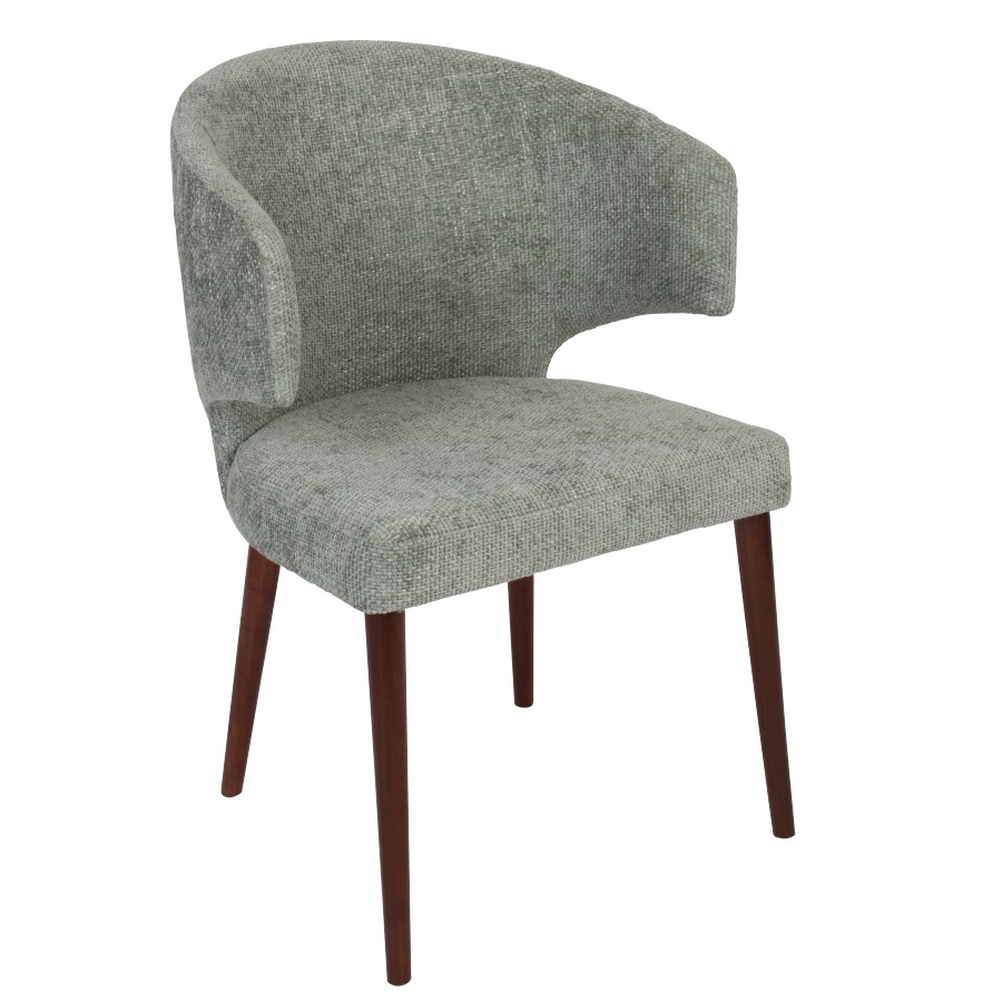Cadeira em faia, com acabamento escurecido e estofo em tecido.