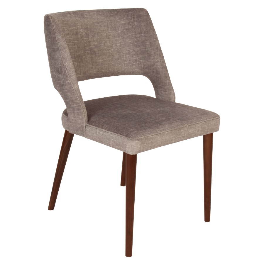 Cadeira em freixo, com acabamento de cor cerejeira e estofo em tecido.